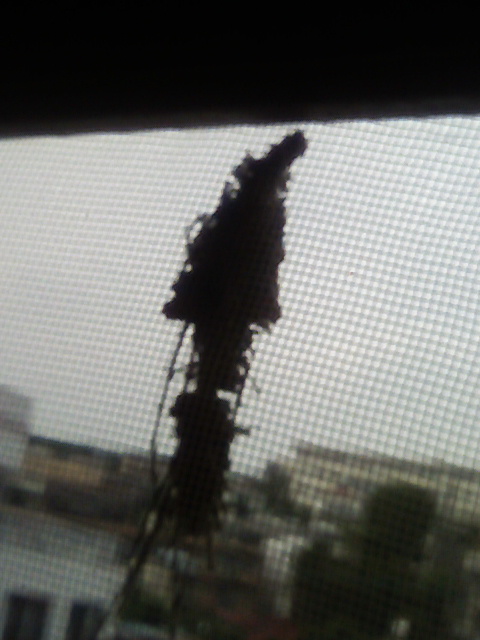 何気なしに東の窓をみたら網戸の外に異様なものを発見。