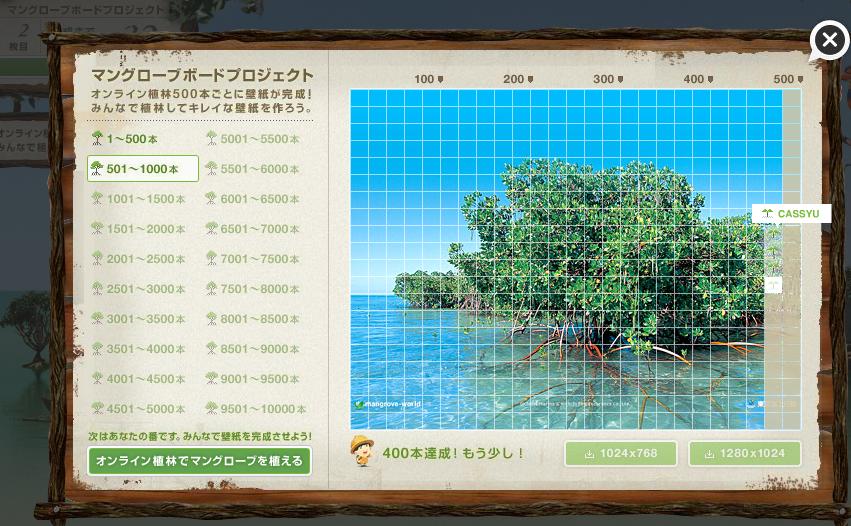 今度はオンライン上で樹を植えるごとにプレゼント壁紙が完成されていく・・・というオマケがつきました。