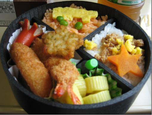 これはオリジナルの鉄博弁当。写真上下逆に撮っちゃって汽車の形に切り抜いた卵がなんだか意味不明な物体になってますが(笑)