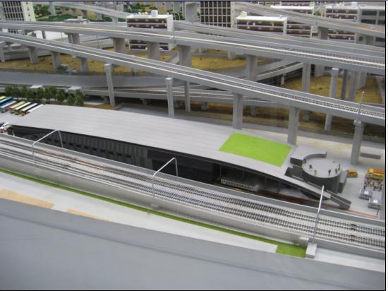 大宮からシャトル便で一駅。在来線と新幹線の軌道にはさまれて、フォルムはこんな感じ。